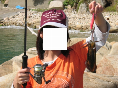 29日(金)に彼女とエギングデートをしてきました今回で2回目の釣行。前回が楽しかったらしく最初は随分張り切っていました。朝9時に現場到着し彼女のタックルをセットしエギング開始僕が投げるのより先に一投目でイカちゃんGETラインにあたりがでたのが分かったそうでえらく満足気でした。僕もビックリです我先釣法恐るべし負けてはいられないと鬼シャクリで僕も一投目から連続ヒットしばらくは入れ乗り状態を楽しみましたがサイズが相変わらず小さい彼女はその後2杯追加し、結果3杯の釣果。僕はというと彼女ほったらかし釣法で35杯の釣果(最大で15センチと小さいので写真とらず)途中のトイレ休憩で面白いものがあったのでついしょうもないことをやっちゃいました(^^ゞ来年30ですが何か?(^^♪最後のほうは彼女はすっかりご機嫌斜めになり、反省して早めに切り上げ食事に行きました。やっぱり一人が気楽でいいや(^_^;)と思った釣行でした!口が裂けても言えませんが(^^ゞ次回は来週の火曜に釣行予定だったのですが、(月)の夜中にレッスンしてくれと知り合いに頼まれまして、久しぶりの徹夜釣行となりそうです。夜釣りは久しぶりなのででかいの取りにいってきます。話は変わりますが、今回の釣行で出会った方がボートエギングで1キロ弱の親イカを釣ってはりました!やっぱり手付かずの磯はすごいですね☆本日の釣果 35杯 + 彼女3杯 ☆今期最大サイズ 20センチ(更新できず) ☆今期TOTAL 301杯(300台に乗りました!目標まであと200) 彼女TOTAL 8杯