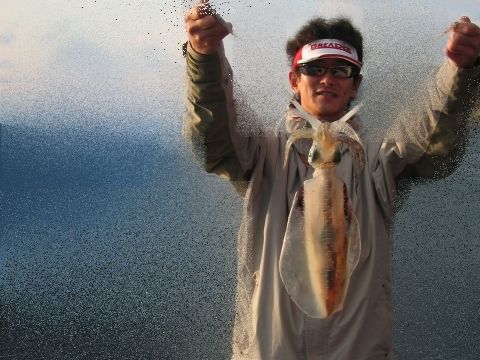 今回はこの秋の釣行でもっとも厳しい釣行となりました。昨夜から知人がエギングを教えて欲しいとのことだったので(人に教えるような腕ではありませんが(^^ゞ)夜中の1時くらいからエギングを開始しました。風も波もなく湖のように穏やかで釣りはし易いけど、潮が動いてないのか中々反応がありません(-_-;)5投目にしてようやく1杯15センチのまずまずサイズをGET!(デジカメ忘れたので写真はありません(^_^;)しかし今日はこの知人に釣ってもらわなければ意味ありません(^^ゞまあ、イカはいてるし釣れることを証明できたのでまずは士気上げ成功!知人にシャクリ方やフォールなどを教えてようやく知人も豆イカGET!初めてあたりが分かったそうで嬉しそうでした!しかし後が中々続かず朝4時までやって僕が9杯、知人2杯と凡釣になってしまいました(-_-;)でもやっぱり夜はサイズアベレージが15センチと型は揃ってました。その後は知人と別れて、ブログ仲間の内っちゃんと朝7時に合流!久しぶりのご対面です(^^♪挨拶を交わし状況を聞くとここもどうやら渋いよう・・・。でも気分一新!2投目で乗ってくれました(^^♪サイズは今までやってきた場所よりもアベレージが2センチほど大きい印象を受けました。初めての釣り場で今までしたことがない釣り方ができたので楽しかったです。内っちゃんありがとうございました(^^♪ここでアオリ12杯とコウイカ1杯を追加し、夕方までダラダラ粘るも風もキツクなり、濁りが入ってきたので15時納竿としました。内っちゃんは夕方の時合い狙いで粘るとのことでしたがその後はどうなったのでしょうか?ブログ結果が楽しみです。徹夜ランガンで21杯の釣果と中々くたびれる釣行でしたが、エギングの楽しさを知人に感じてもらえたので良しとしときます(^^ゞ☆本日の釣果 アオリ21杯 + コウイカ1杯☆本日の最大 16センチ☆今期TOTAL 322杯