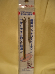 オフトから格安¥1400前後で小型(ボールペンより細くて短い)のライン結束器クイックノッターが新発売されましたラインツイスターを買おうかと思案中だったのですが値段も高いし、結構かさばるので値段の安さに引かれて即購入しましたボールペンのようにふたをするとこんなに小さくコンパクトになり携帯も邪魔になりません下記のサイトで動画で使用方法が紹介されていますのでご覧ください。☆クイックノッター使用方法☆実際にクロス編みをやってみましたがほんとに簡単でめっちゃ強かったし、なにより早い今までは手作業でノーネームを組んでましたが、時間がかかるし面倒なので釣り場でラインが切れた場合は電車結びをしてました。今度からは現場でもすぐに強力なシステムが組めるのでガンガン攻められます何より値段がおすすめです手作業の方は安いし確実に組めますので是非利用してみてはいかがでしょうかかなり良い買い物ができたと大変満足してますおすすめ