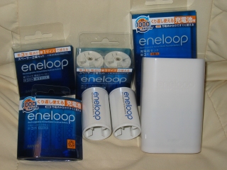 ナイトエギングをするようになってから、ヘッドライトや水中集魚灯など電池をたくさん消耗するアイテムが増えてきました。100均で最近は安く買えるといっても単一など4本で¥400はしちゃいます(-_-;)消費電力が大きいので毎回新品に買い換えていましたがもったいないし、使用済み電池の処分も面倒です。そこで前から気になっていたこの電池に切り替えました。とりあえず充電器と単三を12本、単一スペーサーを4個購入しました。特徴● エネループは、お店で買ってすぐに使えます。 SANYO独自の新技術により、購入後の初回充電が不要になりました。 また、緊急災害時用の予備電池としても使えます。● 「充電したのにしばらく置いておくと使えなくなっている」そんなことがありませんか? エネループなら、充電した後、6ヶ月後で約90%、1年後でも約85%のパワーを キープ。※1 充電しておけば使いたい時に、すぐ使えます。 ● 通常の使用でのメモリー効果の影響が少ないので、全て使い切るのを待たなくても、電池を使 った分だけつぎ足し充電ができます。● 充電池は高い?そんなことはありません。 約1000回※1くり返し使えるので、1回あたり、たったの4円※2 (充電時の電気代も1回あたり、わずか0.2円※3)。 電池を大量に買ってストックしているあなた、お得なエネループに替えませんか? ● 乾電池に比べパワーが長持ち。 デジカメ撮影枚数なら乾電池の約4.4倍。● -10℃の低温でもパワーは長持ち。 寒い所で性能が低下してしまうのは、乾電池の構造上、仕方ないもの。エネループなら大丈 夫。もちろんスキー場でも使えます。こんな感じで単三を差し込むだけで単一電池に早変わり!(^^)! でも容量は単三のままなので持ち時間は短くなります。水中集魚灯に使うには軽すぎるのでおもりを用意する必要がありますが(^^ゞ今度どの程度の時間点灯するのか実験してみます。単3形4個付 単3形・単4形兼用 充電器セット ランドクラブ 最初がまとめての出費となりますが、(今回で総額¥4800、最初から4本は持ってましたので)良く使う方ならほんと経済的で高性能の電池となりすぐにもとが取れます!家中の電池製品をこれで統一しとくと便利と思いますし、今後買う必要がありません。このお店が一番安かったし、送料も全国500とお買い得でしたよ(^_^)v ECO生活を電池から始めませんか? おすすめです(^^♪