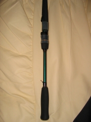 先日釣具の決算セールで購入したSTX-EG832MH-SV(エメラルダス)を昨日早速使用してきました(^O^)/なんとか小さいながらも2杯GETでき無事墨付けも完了しました(*^_^*)坊主くらったら縁起悪いな~と思ってたので一安心(^^♪で、ロッドの感想ですが・ ・ ・最高↑でした!なんといってもMHアクションで106gは最高に軽い!ブランクスはカラマプロトMHより少しヘビーな感じでしたが、張りがあって金属的な感度があり、ボトムの岩や藻にあたるのがロッドからしっかりと伝わってきました。しかもただ硬いだけのロッドではなくとてもしなやかで乗せも抜群!昨日はナイトエギングだったのですが、足元まで寄ってきたイカにエギを引っ張って行かれるあたりがあったのですが暗くて良く見えず、気づいたら竿に当たりがでたという感じで合わせを入れなかったのでこれはバレたな!と思っていたらロッドの反発でオートマッチックにフッキングしてくれました!自分は元気よくイカが引っ張っていくあたりで合わせをしくじってバラすことが多かったので正直驚きました!まあ、たまたま抱き所が良かっただけかもしれませんが(^^ゞ しかしやはり、不満足な点も2つばかり発見しました。まず、リールロックがアップロックなのでしゃくるとどうしても緩んできます。ゼナックのリールストップラバーを使用してましたがそれでも多少は緩んできました。次は、フックキーパーの位置がグリップエンドに近い位置にあり、掛けにくいと感じました。また、Wハンドでしゃくると左手にキーパーがあたり、最初は手が切れたかと思いました。まあ慣れるとどうって事ない部分なのでよかったですが(^^ゞ投げ方も今までのロッドと違い、投げ釣り投げより、反発を生かしたバス投げの方が良く飛びました。この投げ方はエギだけ飛んで行った事が何度かあるので要練習です(^_^;)評価としては今まで触ったロッドの中では1番良かったです。あとは使いこんで自分の物にするだけですね!このロッドとカラマプロト79がベストロッドになりそうです(^^♪