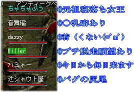 (´・ω・`)ノ チャオ♪ 昨日の日記の支援さんが88歳になりました(^-^)//""ぱちぱち 許可をとって載せちゃいますヾ(´ー`)ノはい。待ちに待ったエンタデビューです♪昨日のIN時@13%だったのですが、ふうたんが一緒にアメでレベル上げを手伝ってくれ、無事に88歳に☆-(ノ゚Д゚)八(゚Д゚ )ノイエーイ初エンタながらも立派に支援を務めてくれました~♪とりあえずなので、人が集まらず3人エンタだったため、あんまり効率は良くなかったかもだけど、次はフルPT組んで行けるといいねヾ(´ー`)ノこれからもよくちぬ私をよろしくm(._.)m自分・・図書館マニアですから by梅倉 健さて昨日もいっちまいりました。支援・筋肉×3・私のムンムンPTで。と・・・赤装備のパラさんが見学をされてたんですが、階を増すごとに感動されたのかオクチャが変わっていきこちらとしては、そのオクチャが気になって気になって狩りは二の次状態に(*´д`*)ハァハァ 「次なんていうんだろうね~」とかPTチャットで話しながら上ってましたら。そのパラさん「すごい!感動!」「+9バトルボウお土産にいただきました」「どこまで行くんだ!つわもの達だ!」「皆さんの集中力におみそれしました!」とかオクチャがどんどん変わっていくんですよね^^変わった人面白い人だなぁと思ってずっと見てたんですがSS撮っておけば良かったと今になって後悔(´・ω・`)b油断した私・・・16FでちぼうT_T16Fで死ぬなんて久々だわ('A`)とか思ってたらその赤パラさん・・面識全く無かったんですが、何を思ったのか。。。。。死んでる私の横に入ってきて・・即死('A`)(そりゃそうやw)じっとしてればもっと↑見れたのに('A`)笑wとってもノリのいい かわいらしい方でしたwwなんでも昨日拾いたてのレイを装備して頑張ってらっしゃいまして、その後も図書館の4Fに行っては特攻→死亡→特攻→死亡ととってもとってもノリの良さをアピールしておられましたヾ(´ー`)ノこんな出会い方でしたが、いつか一緒に図書館の↑を目指せるようになるといいなぁ( ̄ー ̄(。-_-。*)ゝポッ と思いました。チャンチャン。てとら様。|-`).。oO(多分貧●マニアだよその人・・・)ってどういうことですか(-_-#)■■■■■■■■■■■■■■■■■■■■■■■■■■■■■今日の一曲♪LINDBERG - もっと愛しあいましょ(´・ω・`)なつかしぃむかぁしよくカラオケでこの振り付け流行らなかった?w(´・ω・`)古いっ