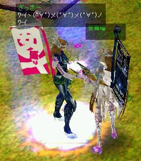 (○´∀`)ノポンジュ-ス相変わらず暑くて(;´ρ`) グッタリ ですね。ちらほら、、、、イベントリングが使えないと言う情報が飛び交ってますね(´・ω・`)期待はしてなかったけど(´・ω・)y━・~~どうせ使えなくても集めてしまうし(´・ω・`)vでも 究極のシークレット情報がまだあると期待しましょうヾ(´ー`)ノベガとアルタイルリングなだけに何かしらの浮いた情報を(*´д`*)ハァハァ 指輪交換したら子供産まれるとか(*´ェ`*)ポッ(ゞノ・ω・`)ナイナイたまには サブキャラでも(*´ェ`*)ポッネーブルです♪♪ サブのギルドの旗 結構お気に入りです(* ´艸`)ププ「女盛り」☆-(ノ゚Д゚)八(゚Д゚ )ノイエーイ|-`).。oO(そんな年じゃないですがイベント中だけの限定祭り精錬祭り(。+・`ω・´)シャキィーン☆ を毎日繰り広げてます(*ノωノ)こんな感じで・・・・間違えた_l ̄l○これはオボロ祭りの写真ですた(´・ω・`)ハイハイ オボロ三段活用でオボロの虹が出来ちゃいましたイベント中ほぼ図書館に篭ってるから 毎日オボロ祭りです。オボロにて一日終わるので、最近まともに「ゲーム終了ボタン」を押して落ちた記憶がありません('A`)(´・ω・`)・・・・・こっちゃでした。ハンマーを量産して叩いた方が効率がいいよ。って教えて貰ったのでその日からひたすら精錬してます。+1から+1 3連荘とか・・・・・(ノ`Д´)ノ彡どんなけ~!!(-ω-;)ウーン 一生懸命集めて戻って精錬して・・・精錬前とほとんど変わらないと・・・ほんと凹みますね。・(うд´)・。[壁]ロ゜)ハッ精錬運が無いのは もう何年も前からの話でした(´・ω・`)忘れてた。精錬運がある人のアドバイスを聞いても(ゞノ・ω・`)ダメダメでもまぁ・・・・・普段合エンとか高いし、装備合成も高いから チキンな私はこんなに精錬することが出来ません(´・ω・`)こんな時しか精錬できないしいっか(x´_`)b自分なりに、荷馬車の上で叩いたり、 叩くときリングの左端を叩いたり・・・っていろいろと研究をしながらやってみてます(*´ェ`*)ポッそんなこんなで 最近まともに火炎狩とかしてないですが、図書館の往復などで3日で1%入りました☆-(ノ゚Д゚)八(゚Д゚ )ノイエーイイベントって事で、お友達も遊びに戻って来てるから 結果楽しい日々です(*´・ω-)b ネッそして深まるヘガーの謎