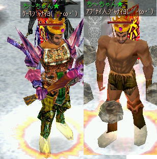 (○´∀`)ノポンジュ-ス 今年も残すところ@1日になりましたヾ(´ー`)ノ(´・ω・`)・・・・・はぇぇ(σ`・д・)σYOナチョさんは 年賀状を普通の官製はがきに書いて「年賀」って書き忘れて投函翌日とかに届いてクラスのみんなに「あと数日だけヨロシクしたらいいんだな!」って言われるタイプです(*´ェ` )(´ェ`*)ネー ←ま、、前置きが長いヽ(`Д´)ノ|-`).。oO(しかも昔みたちびまるこちゃんのパクり|彡サッネーブルです(x´_`)b今日はめっちゃ寒かったですね><; もう会社でずうっと寒い寒い言うてたら「お前がなーー」って・・・・(@ ̄□ ̄@;)!!クロノスでもリアルでも寒い扱いですかヽ(`Д´)ノめっちゃおもろいっちゅうねんヽ(`Д´)ノさて、、、、、むなしくなって来たので(´・ω・`)今年最後であろう日記をおっぱじめようと思います(*´ェ`*)最近INがおろそかになってますが、先日はINすると知り合いが結構いたのでち~ちゃんを火炎に連れて行ってもらいました(*゜▽゜*)オォォーーー!! w(゜ロ゜;w(゜ロ゜)w;゜ロ゜)w オォォーーー!!初めてドロップ見ました(*ノωノ) っていうか、ほんまに落ちるんだ!!んで、火炎でギルメンのサブ80歳のレベル上げ~とか兼ねて久々に(*´д`*)ハァハァ してたら、メダルを取りに連れて行ってもらいました(。+・`ω・´)シャキィーン☆ 6にんPT中メダル未取得が4人(*´д`*)ハァハァ なちょさん達が頑張ってくれて無事4人ともメダル(σ´Д`)σゲッツ!!遅くまでほんまに(人´ω`).ア☆.リ。ガ.:ト*右のSSは タリアとちーちゃんの怠慢(。+・`ω・´)(´・ω・`)・・・・・・|-`).。oO(蚊の鳴くほども削れませんでした・・・。|-`).。oO(表現が古いですか? そうですか(´・ω・`) ケッヽ(`Д´)ノ無事メダルの30ポイントを STAとSTRに振り終わり♪今からちーーーちゃん頑張るぞぉぉって思った昨日(´∀`*)ウフフすべての課金が切れましたo( _ _ )o~† パタッ仕方が無いので、GEM課金(。+・`ω・´)カキーーーーーン!!!!←スルーで(*ノωノ)久々に「音舞瑠」を課金してみましたヾ(´ー`)ノ(-ω-;)ウーン ギルメンが来ない事を理由に自分もサブばっかりやってしまってたんですが、久々にギルド表見ると明らかに人が減ってました('A`)INしてるギルメンがいないと、寂しいからついつい他のキャラやってしまうけど、それだと他のギルメンがINした時も、各々に孤独感を感じさせてしまいますよねΣ(; ̄□ ̄A そしてそれぞれが楽しめる場所を求めて旅立つ・・・うーん 悪循環。これじゃ乂(>◇< )ダメどぅあぁ!という事で、しばらくまた音舞瑠を動かしてみようと思いますヾ(´ー`)ノ[壁]ロ゜)ハッち・・・違いますよ!!! ちーちゃんの大魔王の姿に嫌気がさしたわけでは決して・・・(o;TωT)o" ビクッ!■■■■■■■■■■■■■■■■■■■■■■■■■■■■■さて、おそらく今年最後の日記です(x´_`)2007年 みなさんはどんな年でしたか?(⌒∇⌒)こんなネタだけのブログを見に来てくれた方々、本当にありがとうございました本当に(人-)謝謝(-人)謝謝です。そして、一緒に遊んでくれた方々、素敵なネタを投下してくださった方々。大好きです(*´ェ`*)・・・・・ネタだけって失礼な(ノ`Д´)ノ彡!!来年も頑張ってネタ探ししたいと思います(´∀`*) どうぞ(*´・ω・`)ノ夜露死苦音ヽ(´・ω・`*)よろしくね(*´・ω・`)ノ夜露死苦音舞瑠ヽ(´・ω・`*)また来年も、大陸で遊んでくださいね(*´ェ`*)むしろ ネタになってください(*´ェ`*)よいお年をヾ(´ー`)ノ|-`).。oO(と言いつつ 今からIN(。+・`ω・´)カキーーーーーーーーン!!帰れ!!