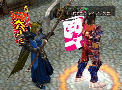 (○´∀`)ノポンジュ-ス 昨日 麺2倍のスーパーカップならぬ「MEGAカップ」っていうラーメンを買って食べてみましたが、3/4しか食べられず。・(うд´)・。|-`).。oO(1.5倍でよかったや・・。|-`).。oO(うん。500ccのデカプッチンのが楽だったなぁネーブルです(○´―`)ゞ早くも今年残り20日ほどですd(´д`o)ネ♪JOEの挑戦JOEお疲れ様でした(x´_`)b私もいろんな方から情報貰って、何とか全問正解いけたかなっ(〃 ̄ー ̄〃) 祝福20貰えたらジャイアン叩かないと!・・・・PSするんだった(*゜ロ゜)ちーちゃんですが、呪われたジャイアンの話の続きでも・・・。ある日、お友達のjimiさんが、自分にジャイアンをたくせ!!と超ドSな優しい言葉をかけてくれたので(ノ∀`*)お言葉に甘えて何のためらいもなくトレード(x´_`)bちなみに渡した時点で+2(x´_`)ココまでのいきさつは・・・・+1→+2→+3→+4→+3(祝福)→+4→+3(祝福10)→+2(祝福10)→+3→+2となっております( ̄^ ̄ゞ すでに10回叩いて+2なジャイアンであります(´・ω・`)(ノ`Д´)ノ彡どんなけ~!!でも・・・・これはただの序章に過ぎなかった(:.;゚;Д;゚;.:)ハァハァjimiさんに言われてトレードで渡した後・・・・。「どう?」って聞くも返事が無い(ゞノ・ω・`)ナイナイしばらくしてトレ窓が開き戻ってきたのは↓↓゚+.(ノ*`・Д・)ノ*.オオォォ☆゚・:*☆キラキラと輝いているように見える+5のジャイアン(x´_`)その後、いきさつを聞くと・・・・ぼそボソと口を開いてくれたjimiさん・・・(´・ω・`)(;゚∀゚):・.ガハッこの日+2から+5にするのに合円を19個使ってくれてました(@ ̄□ ̄@;)!!ほんまにありがとです(人-)謝謝♪♪|-`).。oO(結局この呪われたジャイアン+5になるのに、エンチャ30回ほどしてるんですな・・・ヽ(`Д´)ノさて、ち~ちゃんなネタを(x´_`)先日おともだちのとわたろ氏のサブバルとフレに遊びにいってきました♪スーパーステッポをあげると喜んで、勢い余って町を出て洞窟に入る前の海に落ちたとわたろサブ(´・ω・`)・・・・・まえのめりすぎΣ落としたお金拾ってあげようと思ったらヽ(`Д´)ノ 私も落ちた(`Д´)ゴゴゴ…━(ノдヽ)━( 乂 )━━━ヽ(゚Д゚)ノゴルァァア!!恩を仇で返された(´・ω・`)さてっ♪フレ到着(。+・`ω・´)二人とも準備完了(。+・`ω・´)いざっ!と思ったら これまたとわたろバルが何やら・・・なんのこっちゃ┐('~`;)┌と思ったらトレ窓がきて 装備を渡されました(@ ̄□ ̄@;)!!一応お言葉に甘えて・・・・かぶって見ました(@ ̄□ ̄@;)!!(´・ω・`)なるほどっ・・・。(´・ω・`)魔王かぶってるけど 見えないから ちーちゃんのためにイカシタヘルメットを拾ってくれてたのね(人-)謝謝 とりあえず♪そういう訳で(* ̄ ̄ ̄ ̄ー ̄ ̄ ̄ ̄)伏せられてますが、ちーちゃん95歳になり(@⌒ο⌒@)b今では96歳になりますた(☆д・)・‥…━━━★あんがと゚.+:。☆(-∀・*)(*・∀-)☆゚.+:。あんがと