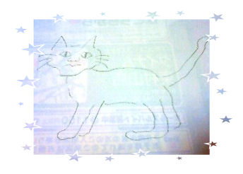 なんでそんな話になったのか忘れちゃったけど・・・私「ねえねえ、絵、うまい?」T「下手」(←即答(笑))私「えーっなんか描いてみて~~~。そうだなぁ~じゃあ祥太描いてよ」T「やだ。」私「もー・・・。じゃあ私描いてみよっと・・・んー・・・こんな感じかなぁ~・・・」近くにあったチラシの裏にササッと描いてみたのがコレ・・・・・可愛くない・・・・・でも、意外にシルエットはちゃんと猫っぽくなってるじゃん「さ、じゃあ描いてみて~」仕方なさそうにTが適当に描いたのがコレぷぷっ・・・なんか浜ちゃんと張り合えそうだ・・・私の方が絵心あるな~(レベル低いけど( *´艸`))なんて思っちゃった、ちっちゃな他愛もない出来事デシタ ↓ランキング参加中です 1日1クリックご協力お願いします~ ←40位前後かな?お試し中・・・料理アルバム(mixi)(更新休憩中。。。)