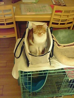 み「仕方ないにょ。たまには私も連れていってにょ」ってみかんよ…自分のキャリー見ると隠れるくせに…