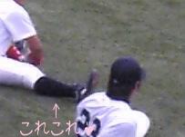 昨日もおとといもねーもー負けるかと思ったよ。絶対に勝てないな~って思ってた。で、結果はまさかの逆転サヨナラ勝ち♪この後で大敗しなきゃ良いけど…おとといの試合は『国鉄スワローズ』のユニフォームだったんだよ。後ろから見ると背番号だけ。選手の名前が書いていない。シンプルっちゃシンプル。2週間前の楽天戦も同じユニフォームだったんだけどね。球場で宮本選手を見ながら『あれ?』って思って友達と話していたんだけど。ミヤのユニフォームなみんなと違う!!最近の主流はジャージみたいなスパイクが隠れるタイプなんだわ。でもミヤはアンダーソックスを出してる!(高校球児みたいなスタイルね)駿足の選手は足さばきがよくなるから、わりと有りがちなんだけどさ。ミヤは特別駿足ってわけでもないし…?友達と『宮本、前からそーだったっけ?』『さあ~?』などと不思議に思ってたんだ。だけど試合に夢中になって忘れてた。で、昨日の試合は通常バージョンのユニフォーム。チラっとTVで観たらミヤが映っていた。『ほにゃっ?アンダーソックス見えない!!!!』なるほどー!『国鉄スワローズ』だったから、アンダーソックス見せるデザインにしていたんだね!わざと昔風に仕上げていたんだねぇ。オッサンツバメの美学だねぇ~♪だけど他の若い衆はイヤがったんだろうね~今のジャージタイプ世代にはちと恥ずかしいかもね。