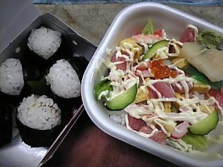 今日は午前中から外回りをしてきたんだけど、お昼ご飯をデパ地下で買ってきた。天むすとサラダ♪…のつもりだったんだけどーーー!会社に戻ってきて、机の上に広げたら気がついた。サラダのパッケージのシールに寿司丼って書いてあった~~~なんのことはないよ、チラシ寿司じゃんかぁ…いやだっ!!も~ご飯ものばっかじゃん!店員さんに『よっぽどご飯好きなんだな~』って思われたよ、きっと!ちなみに全部食べたけど。ああ~野菜が食べたいなー