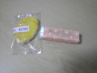 もう何回かblogで話題にしたかも?なんだけど。得意先にお中元やお歳暮を贈る時にはたいていベルンのミルフィーユにしている。なんでかってーと。単純に好きだから!!そして。最初から決めておくと、あれこれ選ぶ時間の無駄がない。そして、嫌いな人がいないのはもちろん。最も重要なのは個別包装されていること。全員で1回に食べ切れない時、大袋だと保存が大変でしょ?そうは言ってもすぐに無くなっちゃうらしいけど。個人の家庭じゃないからビールや、ハムの詰め合わせみたいなのはまず考えられない。。以前私が頂いた中で、ショートケーキは嬉しかったけど翌日持ち越しは無理だった。大箱入りのお煎餅も個別包装じゃないとすぐにシケってしまう。と、言うわけで。常温保存で日持ちして、個別に分かれている物を選ぶことになり…。自然とベルンのミルフィーユになる確率が高い。しかもこのメーカー!店舗にもよるんだけど、オマケ率もかなりのものなのね。商品を選んでいたらミルフィーユの試食を頂いた。次に会計を待つ間にスムージーの試食を頂いた。最後にクッキーをオミヤゲに頂いた。得意先の方よりも、私の方が大喜びなお菓子かも♪
