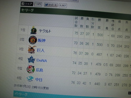 ヤクルト7連勝で貯金3!!やったね~!!!でもって首位!とりあえず明日は首位のまんま♪今のような好調な時期がずっと続くわけじゃないのは分かってる。でも嬉しい~~!