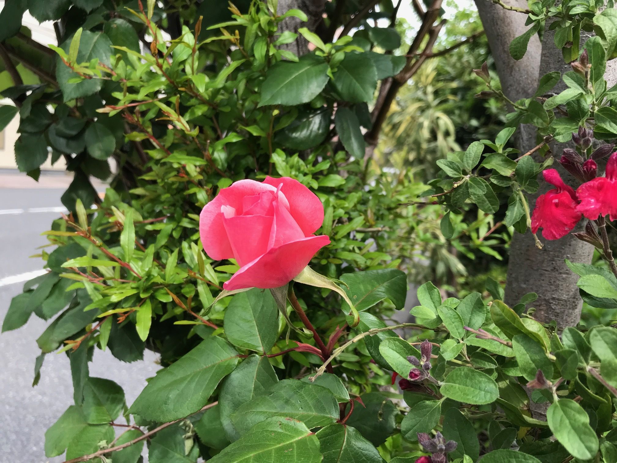 通勤途中で心をホッコリさせてくれる信号機並びの花壇には…バラが咲いていた。すぐ目の高さあたりから咲き始め、日をおうごとにだんだん上へと開花していったよ。バラってすごく絵になる。カワイイというより、キレイな花だよね~とは言っても、実は香りは苦手なんだけど…