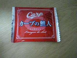 得意先のヤクルトファンの女子から広島旅行のお土産をいただいた。『カープを食っちゃえ~~~』って。たぶん、それはないと思うけど…後で食後のコーヒーと一緒に食べよう♪