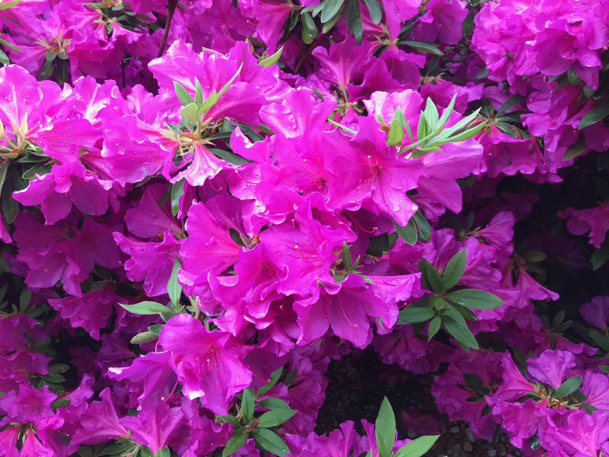 いつも歩く緑道。つつじが満開!!そごくきれい~~~!と思って、よく見たら。この植え込みの周辺だけが満開で、少し離れたつつじはまだまだな様子。日当たりが良いのかな?手入れする人がいるのかな?とにかくきれいで、見ていて嬉しくなってきちゃう。