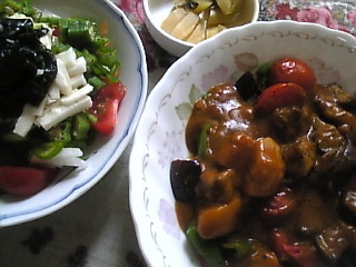 炒めたナス、ピーマン、トマトは後付けでカレールーにトッピング。