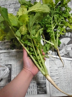 店員さんが寄ってきて『大根の葉っぱを間引いたものなんですけど良かったらどうぞ』って!!