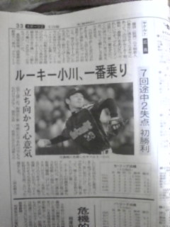 新聞には『新人の初勝利を最もアシストしたのは広島の貧打』、