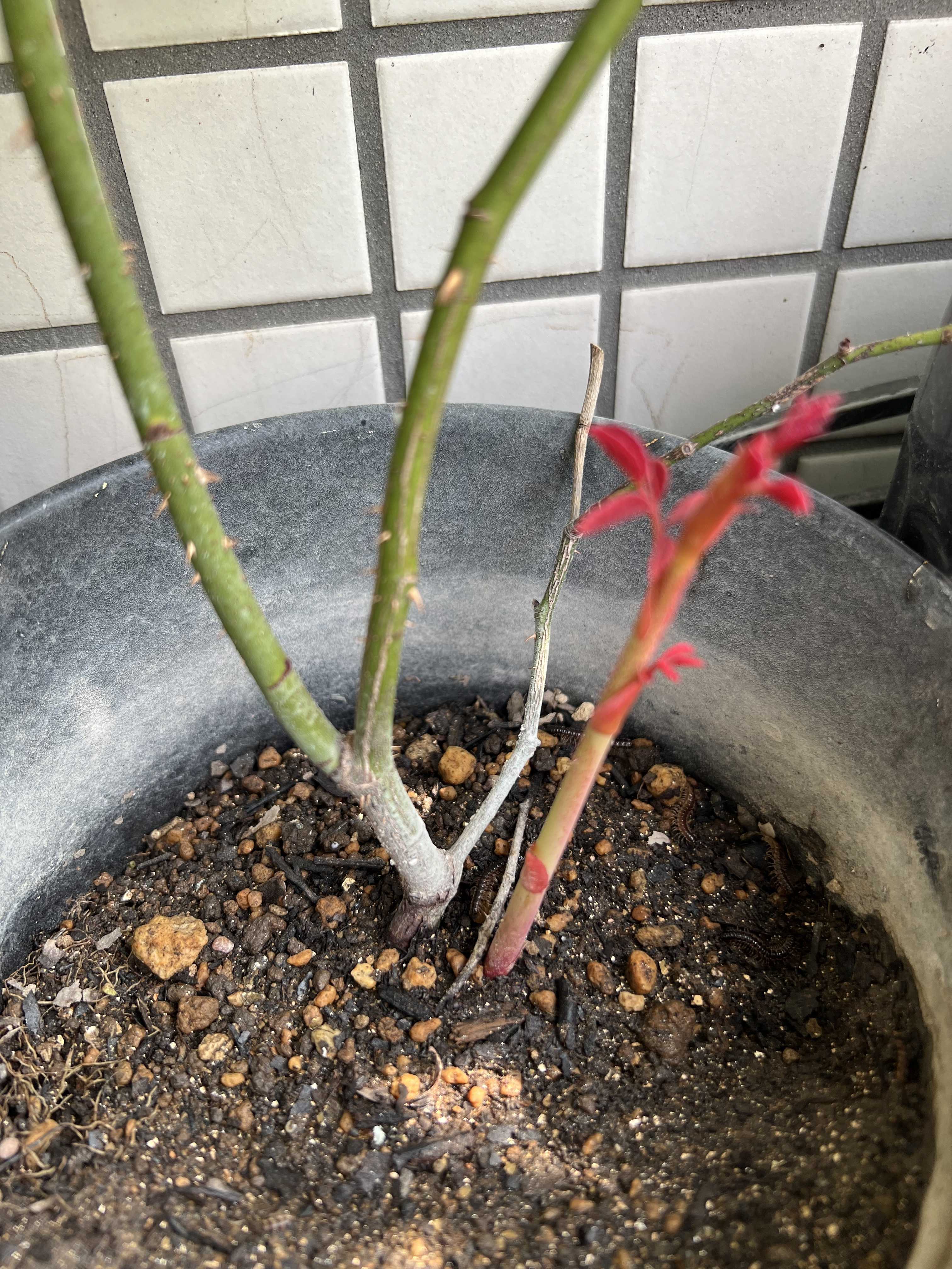 2025-07-06Constance Spryコンスタンス・スプライ育種者:David Austin シュラブローズ、強香、一季咲き挿し木1水抜けが悪くなっていたので植え替えようと思っていたところ...すごいところからベーサルシュート!が出ているので、植え替え保留、折りそう💦