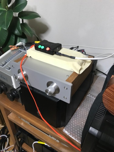 金田式dcアンプ故障したので、仮置きのアンプを購入 迷った結果マランツのPM8005がこのクラス 優秀なので購入した。 ノーマルの状態では、DCアンプよりやや曇る感覚がある、 そこで、インゴットのウエイト作戦を発動した。長岡先生なら、 鉛インゴットガチガチだろうが、もうワンランク上の時代のセンス発動、 筆者オリジナル、 宇田式 セーム皮で巻いた、人工水晶のインゴット4Kgを使用、 さて、 音の方は、PM8005の音がワンランク上昇 コントラストが上がり、カチッと音が明確になる、やや透明感も向上、 これならば、サブシステムとして、合格だ、77点 宇田