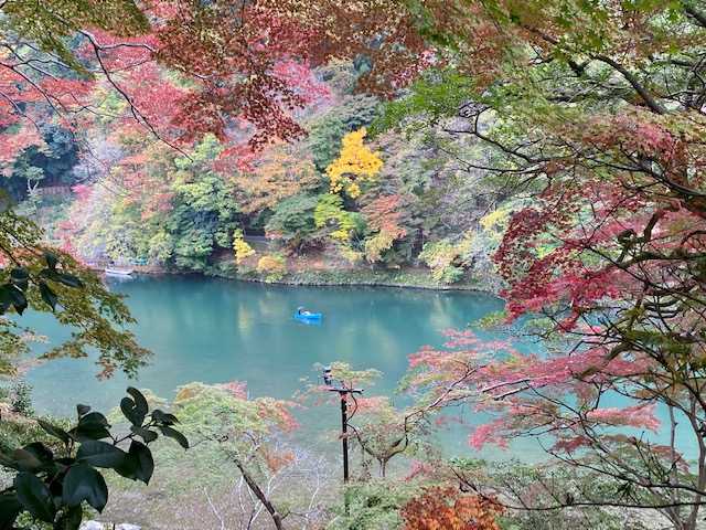 大堰川の水は氷河湖のようなきれいなエメラルドグリーンです。