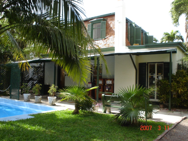 二日目はキーウェストへ半日ほど停泊。かんかん照りで歩いているだけで肩がジリジリしてきました。上の写真は以前にもチラッとご紹介した、へミングウェイのお家です。中も見学できます。彼の飼っていた6本指の猫が繁殖し、今でも40匹以上、彼の猫の子孫が敷地内にいるんですよ(しかもほとんどが6本指)!!猫好きにはたまらないです。↓そして次の日の夜はみんなドレスアップして家族ごとに船長さんとディナーの前に記念撮影をしました。カクテルドレスやタキシードを着ている人までいてビックリしました。この写真は彼のお姉ちゃんファミリー。だんなさんは何だか中途半端な格好でちょっと変でしたー。私もちゃんとドレスを着たんですよー♪↑これはいつかの朝食の時?かな?彼の姪っ子です。グーフィーが来て嬉しいんだけどちょっぴり照れてます、もぅ、ほんとに可愛いんです ↑グランドケイマンと言う島に到着。ここではシュノーケリングをしました。ダイビングや黒珊瑚で有名な島だそうです。黒珊瑚のピアスを彼ママに買ってもらいました♪ここでのシュノーケリングはなかなか本格的で、カップルごとにジェットスキーでそれぞれ沖にでてそこで潜るんです。インストラクターがいくつかのいいスポットに誘導してくれるんですが、ジェットスキーに乗ってて受ける風がめっちゃ寒くて、サングラスしていてもバッシャバッシャ潮水が目に入ってくるんです。痛いわ、寒いわで必死で彼にしがみついてました。正直、その瞬間は「早く船に戻ってゆっくりしたい・・・」と思いました。ま、でも綺麗な魚達やさんご礁を見れたので行ってよかったです。 ↑これは5日目・・・昨日のグランドケイマンでこんがり焼けていまいました(私はちょっと、いやかなり焦りました)