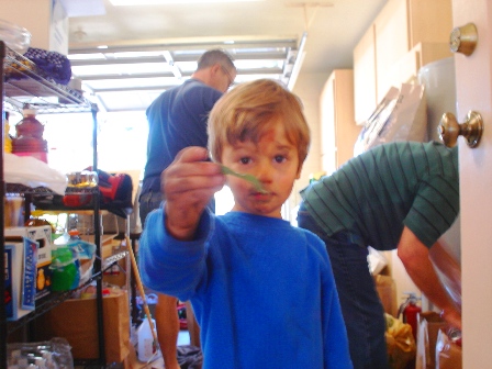 彼の家族が滞在中、1番頭を悩ませたのは夕食!!毎晩はさすがに作りませんでしたが、献立を考えるのに一苦労しました。料理するのは好きなのですが、彼以外の家族は辛いものが苦手で、私の得意料理は結構辛いものなんです。おまけにママはイタリアンで、料理がとても上手いのです・・・(汗)それじゃ、皆が好きそうなメニューにしよう!と思っても、彼パパが糖尿病でタレに使うお砂糖が使えない、とか。少しくらいなら大丈夫らしいのですが、パパはこそこそと内緒で甘いものを食べちゃう人なので、よくないかな、と思って。ママは ”今日のご飯は明日のう〇こ、食べれればなんでもいいのよ~” なんてのん気なこと言ってくれるけど、やっぱり・・・・そんなわけには・・・ねぇ~。なんだかんだはじめは頑張ってみましたが、最後の方は超無難に、チキンヌードルスープ、 チリ(超手抜き!)、 辛くないカレー(ルー使用)・・と、鍋一つですんじゃう料理にしました。1番人気だったのは、皮肉にも日本のカレー・私の頑張りは一体なんだったんだ(涙)もっと修行を積まなければ・・・・とちょっと悔しい思いをしたlucernでした・・・**********************************************************なぜ??フィンよ、朝っぱらからなぜ、そんなに汚くなれるのだ。子供って、やっぱりすごいな~。これは朝の9時ごろ撮った写真です。男性陣は なぜかガレージの整頓をしていました。
