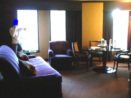 新婚旅行・・・場所も日程も全く未定の私たち(きっと当分行かないと思う・・・)そして今、車も壊れていて遠出もなかなか出来ません(ガソリン安いのにっ!!)そんな私達に、彼の両親が、ダウンタウンにあるちょっと こ洒落たグランド・ボヘミアンホテルへ2日間宿泊のプレゼントをしてくれました☆部屋はこんな感じ☆↓ なかなか広くてお洒落な部屋でした。お風呂とベッドルームはシンプルで普通♪しかしダウンタウンは家からも近いので特に見たい所も、行きたい所もなく、二人でぶらぶら散歩しただけ。夜はホテルのレストランにて正装でおいしいディナーをいただき、そのあとは友達を呼んで部屋でまったりと飲みました。家とはまた違う雰囲気を味わえたので、いい気分転換になりました。ご両親に感謝♪♪****************************************************前の学校の友達との再会ですが、みんなの都合が合わず結局キャンセルになりました。予想はしていたのですが・・・残念~。