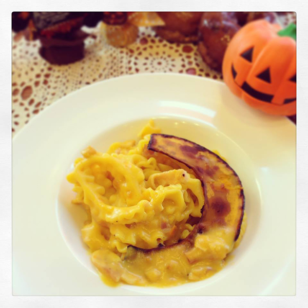 【Aランチのご紹介】 本日からのAランチは・・・『ハロウィンを楽しもう!』をテーマに かぼちゃづくしの生パスタをご用意しました。 生パスタ:かぼちゃづくしのカルボナーラスープ、サラダ、パン、デザート、ドリンク付 ¥890(税込)生パスタはかぼちゃのレジネッテを使用、かぼちゃのカルボナーラソースにかぼちゃのグリル添えました。 店内もハロウィン仕様にてお迎えいたします。 店内のあちこちにかくれているハロウィンキャラクターを ぜひ探してみてくださいね!みなさまのご来店をお待ちしております!