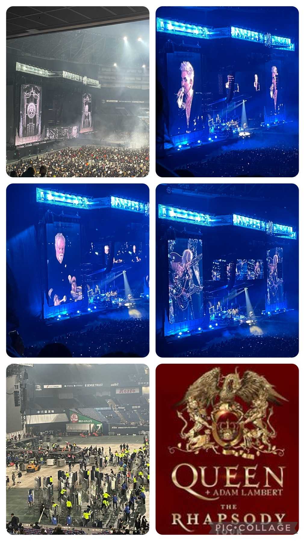 初めてのクイーンのコンサート🎵初めてのドームで見るライブ未だに余韻に浸ってます。オープニングからほぼオールスタンディング💦席は舞台左側でセットが一部見難い席でチケットも少し安かったから仕方ないのですがおばさんにはキツイ…でも立たないと全く見えへんやーん🤨 席も座り心地がイマイチで,もう開き直って立って手拍子やら一緒に歌うやらして楽しんだwそれぞれメンバーのソロもありました。ブライアン・メイのギターソロが一番良かった!ギターを聴くため行ったようなものだから満足でした。「はまべの唄」の演奏は心に染み入りましたよ♡小宇宙をイメージしてたくさんの小惑星がステージに映し出されとても美しかったなぁ。ロジャー・テイラーのドラムのソロは、アダムランバートのバイシクルレースの後にドラムセットがステージ真ん中に登場して演奏するんですよ。まぁ,これがカッコええ!!力強く素晴らしかったんですよ。アダムは煌びやかな衣装と化粧で魔王に見えたwそれにしても伸びやかな歌声に圧倒されっぱなしでした。ブライアンの歌う「テオトリアッテ🎶」では後半をアダムも歌ってくれて感謝🥺2時間ちょっとのコンサートはあっという間でした。2月7日京セラドーム大阪 セットリスト【QUEEN (クイーン) セトリ】全ライブ2024 | やわろっく (yawarakai.com)(曲タイトル 「邦題」)01. Machines (Or 'Back to Humans') / Radio Ga Ga 「マシーン・ワールド/RADIO GAGA」02. Hammer to Fall 「ハマー・トゥ・フォール」03. Fat Bottomed Girls 「ファット・ボトムド・ガールズ」04. Another One Bites the Dust 「地獄へ道づれ」05. I'm in Love With My Car 「アイム・イン・ラヴ・ウィズ・マイ・カー」06. Bicycle Race 「バイシクル・レース」07. I was Born to Love You 「ボーン・トゥ・ラヴ・ユー」08. I Want It All 「アイ・ウォント・イット・オール」09. Love of My Life 「ラヴ・オブ・マイ・ライフ」10. TEO TORIATTE 「手をとりあって」11. Drum Solo ドラム・ソロ12. Under Pressure 「アンダー・プレッシャー」13. Tie Your Mother Down 「タイ・ユア・マザー・ダウン」14. Crazy Little Thing Called Love 「愛という名の欲望」15. You Take My Breath Away~Who Wants to Live Forever 「テイク・マイ・ブレス・アウェイ~リヴ・フォーエヴァー」16. Guitar Solo ギター・ソロ17. Is This the World We Created…? 「悲しい世界」18. A Kind of Magic 「カインド・オブ・マジック」19. Don't Stop Me Now 「ドント・ストップ・ミー・ナウ」20. Somebody to Love 「愛にすべてを」21. The Show Must Go On 「ショウ・マスト・ゴー・オン」22. Bohemian Rhapsody 「ボヘミアン・ラプソディ」ーEncore:アンコールー23. We Will Rock You 「ウィ・ウィル・ロック・ユー」24. Machines (Or 'Back to Humans') / Radio Ga Ga 「マシーン・ワールド/RADIO GAGA」25. We Are the Champions 「伝説のチャンピオン」