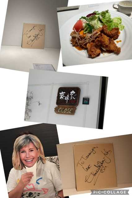 10月2日 ゆかりの地巡りの一つ福島区にある「炭味家」さんでランチオフ会2015年の来日コンサートでオフ会して以来の再会でした。このお店は大阪のコンサートで滞在した時にオリヴィアが行った居酒屋さん。正確にはスタッフが案内したお店ですね。芸能人や著名人のサイン色紙がたくさん飾って会ってその中にオリヴィアのサイン色紙があると以前から聞いていたので一度訪れたいと思っていました。店舗が移転していたので,もう色紙はないかもしれないと思い、オリヴィアファンでサイン色紙があるならお店に行くので見せて欲しいと問い合わせ✉️をしたら、ちゃんと写真を添えて返事が返ってきたんですよね。当日お店に伺うと、個室を用意してくださっていて、なんとテーブルのうえにオリヴィアのサイン色紙が!感激しました。ランチを頂きながら近況報告やらオリヴィアのお話で盛り上がりました。皆で持ち寄ったオリヴィアグッズ。テツさんと私のオリヴィアの形見も再会(笑)旧ファンクラブで作った小さなフォトブック、リストバンド、ウェルネスウォークのオリヴィアのお面?(ちょっと怖い?)記念バッチ、ボールペン、ハードロックカフェのグリースピンバッチ(上野店と大阪店の名前入り)どれもこれも貴重なグッズばかり。私コアラブルーのTシャツを何十年振りかで着ました。よく見たらしみだらけですが、このままリチャードマークスのコンサートに行きました~(笑)リチャード、この服見てオリヴィアのコアラブルーって気が付いてくれたりしないかと思ってけどそんなことはなかったなwこれを機に、一年に一度ぐらい集まれたらいいなぁと思いました。この後、上京して東京でもオフ会に続く。。。大阪、福島の創作料理「炭味家」個室が女子会・デートにおすすめ (tanmiya.co.jp)
