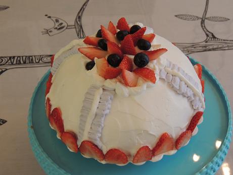 Party partyおもてなし料理・テーブルコーディネート教室 H.P 見てくださいね最新作 第2弾 ドームケーキです ケーキも可愛いのですが ローラアシュレイのケーキスタンドも見ていただきたい ドームケーキは スポンジを厚さ2センチほどにスライスします パオレックスのガラスボウルに 隙間なく貼りつけます (私はボウルに ラップを敷いています⇒ はずしやすいようにです 8分たての甘い生クリームをその中に詰め 丸くくり抜いた スポンジを上にのせます。 冷蔵庫で 半日冷やすほうが切りやすくなります 今度はドーム型をはずし 生クリームで全体を塗ります
