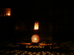 食事を終えて外へ出ると、日没も近くなり、所々でたんころりんに火が灯されはじめました。