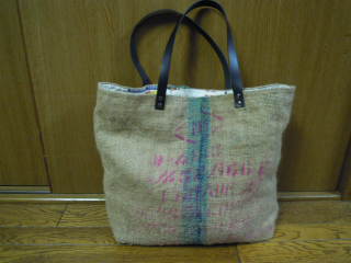 前回の長崎・波佐見町・秋陶めぐりの帰りに波佐見町で素敵な所を見つけました。西ノ原地区の「hanaわくすい」雑貨ショップ「ギャラリーモンネポルト」・「モンネ・ルギ・ムック」カフェレストラン・「コーヒー豆屋shandy]1500坪の敷地に昭和初期の製陶所の建物を利用したお洒落なお店です。どの店もどこか懐かしくチョッと立ち寄りたくなるお店です.「コーヒー豆屋shandy]さんでコーヒー豆袋を無理を言って一つ分けていただきました。以前からビーンズバックを作ってみたかったので・・・やっぱり願っていればいつの日か願いは叶うものですね(嬉しい~)ビーンズバックは素敵なのですが・・・まずは洗濯(匂いと少しでも毛羽立ちを取る為)織り目が粗いために薄い接着芯を張り、採寸・縫製・・その間にも毛羽立ちでワアォ~なかなか形になるまでの道のりは大変です。ようやく完成しました。(coffeeのアップリケはバッツクスキンで作りました。)裏布・・悩みに悩んで英字風の布にしました。裏布に内ポケット・二箇所取り付けて表布と中表に合わせてバックの口を縫います。最後に皮の持ち手をカシメで止めます。持ち手の長さ50cmです。(ショルダーにもです。)