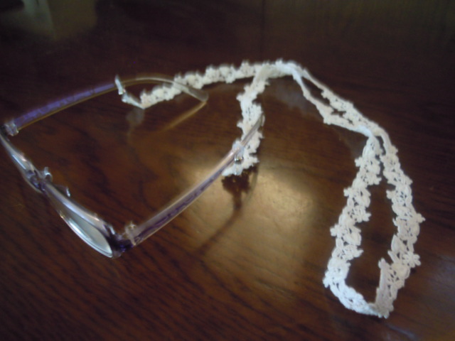 福岡県久留米市上津店の手芸店「サンカクヤ」さんの従業員の方が素敵なストラップをしてらっしゃったので・・・作り方をおしえていただきまして・・・素敵な素敵なストラップが完成しました。素材はレースなので軽くてお洒落でなかなか付け心地も見た目もgoodです。作り方は・・レースの端にボンドを付けて折り端を強化する。強化した端に丸官(一袋約50個入り)を通し丸官にメガネチェーン止金具(2個入り210円)を取り付ければ出来上がりです。簡単で素敵なストラップ作りに是非とも挑戦してみて下さい(^_-)-☆お披露目のレースは1m1190円~210円です。必要な長さは80cmです。m(__)m画像が・・・見づらくてすみません。