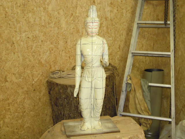 今日、初めて観音像を彫りました。(難しい所はほとんど先生ですが・・・)。主人の友人達6人で参加しました。場所は福岡県八女市立花町北山1860-1・tel0943-23-7177真言宗荘厳院・法雲佛像彫刻所。住職・西田法雲住職の西田法雲さんは自然体で気さくな方で丁寧に彫り方を教えて下さいます。奥様も温かい感じで気さくな方でした。(冷たい緑茶、ありがとうございました。美味しかったです。)自然の中、山とせせらぎと鳥のさえずりを聞きながらの観音像彫り体験でした。(癒されますよ)。午前9:00~3:00、約5時間の長いようで実際体験するとあっという間の時間でした。(彫り始めると集中するせいか短く感じるのかもしれませんね。)費用は一人1000円(材料込み)驚きの安い費用です・・・感謝です。昼食はおにぎりとチョッとしたおかず持参ですが、仲間と食べると何よりのご馳走です。参加される時は筆記用具と昼食・飲料水は持参された方がいいかもしれません。今、先生が手がけてらっしゃる仏像の画像からお披露目します。初心者4人の完成した観音像をお披露目します。(右端は未完成、作品です。)私作・・・。(難しい所・最後の手直しはすべて先生にお願いしちゃいました。。)是非、興味がある方一度参加されませんか・・。(参加したいなぁ~と思ってらっしゃる方は事前の連絡が必要です。)自然の中で充実した一日を体験してみませんか