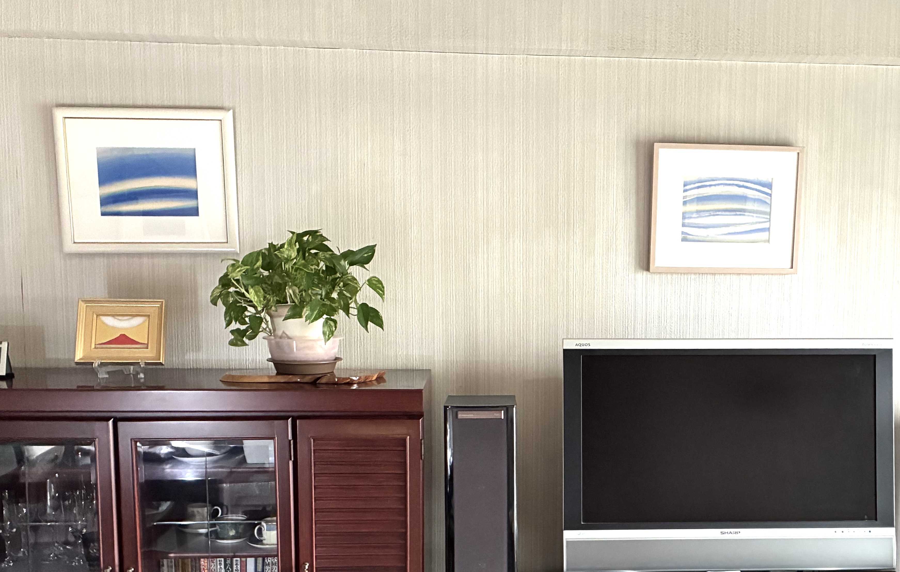 「神々しい作品ばかりで、眺めているだけで自然と呼吸が深まり、心身が落ち着くので瞑想をする時にも、とても重宝しています。特に”富士山から宇宙へ”と”宇宙の風”が好きです。波動が高まる美しい光や波、エネルギーの表現が見事ですね。・・・」女性