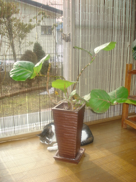 後ろに写っているのは、 サンペイ です。日向でお昼寝中です。