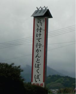 週末はお彼岸のお参りも兼ねて夫の実家へ行ってきましたパワースポットとしても有名になった「天岩戸(あまのいわと)神社」や「天安河原(あまのやすがわら)」がある宮崎県高千穂町岩戸その岩戸地区の入口にある看板がコレ「気い付けて行かんと」う~ん、これは分かりますよね =気を付けて行かないと「ぼくばい」”○○ばい”は福岡でも言葉の語尾によく使う方言だから分かる「ぼく」・・・僕???「ぼく」は宮崎の方言で「大変」とか「大変なことになる」という意味だそうです「気を付けて行かないと大変なことになるよ」山深く曲がり道の多い高千穂の道気を付けて行ってくださいという交通標語なのですね調べてみると宮崎市周辺では「ぼくばい」が「ぼくじゃ」になり「ぼくばい」は高千穂弁という解説もありましたう~ん、高千穂に行けば、心配性の夫の母は日常的にほんとによ~く使っています「そんなことしたらぼくばい」とか「ぼくじゃが」とかでも、宮崎市内の人が言っているのは聞いたことない気が・・・宮崎県民になって約3年私自身は福岡弁で話しますが宮崎県内でも北部と南部とでは話し方が違っていて(特にイントネーションやリズム)まだまだ楽しめそうです♪
