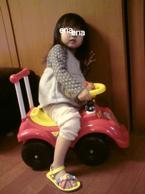 久しぶりの更新です。最近、娘がお昼寝をしなくなってしまい、更新する時間が無くなってしまってました。夜は主人が帰ってきてしまうし・・・。主人には内緒なんです。このブログ先日娘のクリスマスプレゼントを買いに近くのトイザラスへ行きました。ものすごく車が多く、そして店内は更に賑わっていました。いつもは土日もがらんとしているのに・・・。レジだってスイスイなのに・・・・。クリスマスパワーですね。娘には何をプレゼントしようかと考えていたんですが、娘の反応を見て決めようと思っていました。どれもこれもイマイチの反応で、いったい君は何を欲しい?????娘にストレートに「何が欲しいの?サンタさん持ってきてくれるよ」って尋ねたら、嬉しそうに笑顔で「バイク」って答えました。バイクか・・・・・。娘の言うバイクとは三輪車の事なんです。アイデス ミッキーおしゃべりカジー三輪車2 レッド前々からお友達の三輪車に興味津々だったんです。私も買ってあげたい気持もあるんですが、うちはマンションなんで置き場所が厳しい。そして何よりも押して歩くのが面倒だな~~~って。広いお庭がある家だったらいいんですけど、公園まで押していかなくちゃいけないし、帰りは坂道だし・・・・。だからあんまり乗って欲しくないんです。というわけで、もちろん娘の願いは却下されました。結局何も買わずにお店を出ました。帰りに同じビルにあるインテリアショップに立ち寄ったところ、子どもグッズが置いてあるコーナーがあり、そこには子どもが中に入って遊べる可愛らしいテントが置いてありました。娘はめちゃめちゃ楽しそうにそのテントで出たり入ったりして遊んでいました。あまりにも反応が良かったので、そのテントに決めました。キッズ キャッスルテント (子供用 Julie tente ジュリーテント)早速こっそりと購入しようと夫婦で作戦をたて、主人が購入するためにお店の人に尋ねたら、なななななななんと「売り切れ」って言われたそう。2月まで入荷無しとは・・・・だったらどこかに書いといてくださいよ!!って感じだったんですが、気を取り直して楽天さんで注文しました。クリスマスまでには届くそう。楽天さんもあちこちで完売していたので、けっこう人気なんですね~~~。喜んでくれるといいな~~~。そんなこんなでクリスマスのプレゼント手配は終了。あとはクリスマスケーキを作るか買うかでいまだ悩んでいるところです。最近、じっとしていないのでなかなか写真が撮れない娘です最近の娘のお気に入りカーデです。ジンボリーのFaux Fur Collar Cardigan 2T襟のファーは取り外しはきかないんですけど、とっても清楚な感じで可愛いです。白ってやっぱり可愛いですね。汚されるのは怖いけど・・・。これを着ているとよく褒められます。ニットの感じも厚手でしっかりしているので、とっても温かそうです。合わせているカーキのワンピは頂き物で組曲のものです。足元はクロックスのナディアブーツ(ピンク)です。