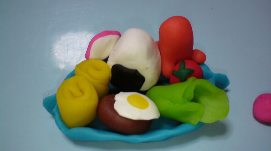 かなり久しぶりの更新です。年が変わってしまいました最近、全くパソコンの前に座ることができなくなりました。娘のお昼寝の習慣が無くなってしまったためです。自分の時間ゼロです今日は3日前から風邪?でダウンしてしまった娘の横でパソコンに向かってます。ずっと40℃前後の熱にうなされています。今、流行りのインフルエンザかなってドキドキしながら病院で検査を受けましたが、陰性でした。早く、良くなってね。話は変わりますが、最近娘は小麦粉ねんどにはまっています。特にすごい作品を作れるわけでもないんですが、すごく楽しいらしく、ヘビとか言いながら、細長く伸ばして遊んでいます。そして、オーダーは母に出され、あれやこれやと作らされます。そんなに美術センスがあるわけでも無いので、結構苦労してしまいますが、最近、こんなの作りました。お弁当です。いちごのケーキです。作っていると、けっこうはまります。小麦粉粘土は原材料は、小麦粉と水と塩なんで、とっても安全だし扱いやすいです。長時間放置していると乾燥により硬くなってしまうけど、水に濡らしたフキンに包んでおけば、復活です。私が購入したのはこちらトイローヤルカラフルねんど【No.739】12色セット12色入っていても、かなりお得です。中に小さなナイフとスプーンも付いていました。これから寒くなるので、こんな遊びで冬を乗り切りたいですね。