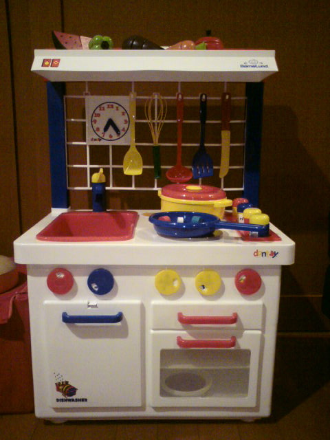 今、娘がはまっている遊び・・・。ままごと遊びです。ままごと遊びと言っても、今は家でおもちゃの木製の野菜はじめてのおままごと(お料理セットNEW)これをチョキチョキ切って「はい、どーぞ」って私にくれる程度なんですがでも先日、デパートのおもちゃ売り場に遊びに行った時、出会ってしまいました娘を夢中にさせるおもちゃ、帰りたくないとダダこねるほど楽しいおもちゃにままごとのキッチンこれです。DANTOY キッチンセンターあんまり楽しそうに遊んでいるので、今年の2歳のお誕生日はこれかしら?しかし調べてみるといろいろあるんですね~。木製のこんな可愛らしいものままごとセット 本格的なスタンドキッチン おままごと ヒロ・コープレーション (エドインター) それから・・・これも可愛い!BRIOのキッチンあるんですね!BRIO(ブリオ) 木のおもちゃ レンジ キッチン ままごとどれも可愛い!!大人でも夢中になりそうです。木製のキッチン可愛いけど、持ち運びはいかがなものか?狭い我が家はその都度、移動させて遊ぶことになりそうで悩むところです。まだまだ誕生日まで時間があるので、じっくり検討しなくちゃ!でも、誰か買ってくれないかしら~じいじ、ばあば、ひいじじ、ひいばば。お願いいたします