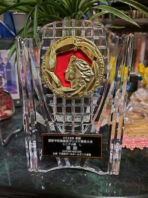 隣の陣地にもまだジュニアという千葉の選手がいらして、C級ラテンで優勝だったかな。