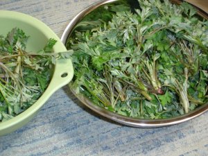 昨日22,000件のアクセスをようやく迎えたようです。22,000人目のご訪問者は22000 2006-03-20 22:37:05 ThePostManさん でした。ありがとうございます。さて、届きました。よもぎ。さらにさらに、「じばさんず」恐るべし。朝一に行くとあるではないですか。リタイア組みと思しきおじ様おば様で一杯です。店は9時開店ですが、どうも品物が揃うのは10時ぐらいらしく人が一杯いました。で、見つけました「地元産」新鮮なヨモギ。当然購入まあとりあえずお墓参りから帰ってきて作り出し、ご飯のしたくもせずこんな時間になってしまいました。さらに、ヨモギ入りパンケーキも良いなと思っていたところ、奥さんいわくホットケーキミックスがあるかもわからんということで、草もちに上新粉250に対し、ヨモギ400全投入。ちょっと無理がある。草が毛羽立ってます。いったい何が出来たのでしょう。って、結局7割がた奥様がやってくれたのかな?お口直しに、先日どなたかのページで見かけ欲しくなり今日買いにいってしまった、小田原の和菓子屋さん「菜の花」の桜餅三種です。しかし、作ってみて親のありがたみが良く分かりました。昔は川原で摘んできてから、おやつとかに作ってもらいました。