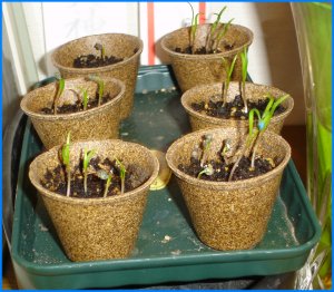 ごめんなさい。急に雨が降ってきてしまい、画像は取れませんでした。さらに中身もないことに気づきました。今日は本当に暖かかったですけど、温シップ貼ってて熱かったです。でも、植物にはよかったようでビニール越しのジャガイモもやっぱ育ってました。桜も半分近く咲いたのでしょうね。満開に見えましたので。さて、園芸ねたがないのもなんですので、ごちゃごちゃ込み入りだしたえんどう豆です。実が付いたやつは左上のやつです。温室実験プランターも残念ながらどちらも大きな変化なく順調に成長しているようです。培養土?どなたか、背の低いトウモロコシの種の品種おしえて下さい。