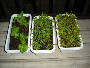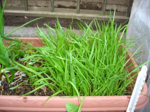 今日は温かかったようで、白いジャガイモの芽が緑になっていますね。にらは柔らかそうで一回目の収穫を出来そうです。大根失敗。一本立ちが早かったかも。妙に大きく育ってます。多分葉っぱだけ。嬉しい変化は、先日温室の中の枯れたアップルミントを剪定したのですが、小さな芽が一杯出てきていました。他にも小さな変化はあったのでしょうが、ちと隣のウミ「訂正ソラです。ウミは茶色のこです。」に驚かされて逃げ帰ってきました。多分、あったかいナマごみ処理機の上にいたのでしょう。そちらに向かうと私の横を何かが通り過ぎていきました。デジカメにメモリースティックを入れ忘れて外に行ったため、本日の画像はなし。まだ、驚いてますが、おやすみなさい。いじめたことないんだからおどかすなよ。