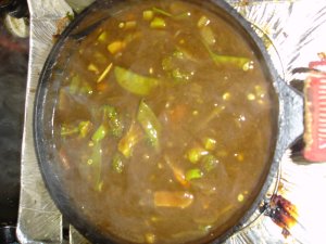 義妹の実家産プロのお百姓さんが作った自家用お野菜を元にちっとだけ足して、フライパンでいためて、中華スープ足して片栗でトロ見つけておしまい。いつかは、自分でこんなお野菜を作ってみたい。食べすぎです。ご馳走様でした。