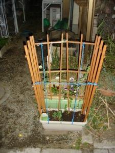 お風呂に入って肩を暖めて、両肩に温シップを貼って気持ちよくなってきたので、更新です。一日にして異常事態発生。ジャガイモがもう最初の針金まで伸びている。本当に今日は暖かかったのですね。うーん芽かきはまだ先とか言いつつ考えなければいけませんね。温室シートともに。でも水曜あたりからまた冷えるんですよね。で、テーマのルッコラの茎ですが、これは確か細いほうです。暗くて太いのが見つからなくて。こいつのどれかを、鉢に移して放っておけば花咲くんですかね?これだけの太さがあればスプラウトの10倍以上のわさびみたいな茎なので移植しても十分に元気とも思うのです。最後に、近々収穫できそうなたった一つのさやえんどう。残り二つの花が早く実にならないかな?あとから植えたつるありは勝手に増殖しだして絡んでます。おやすみなさい。