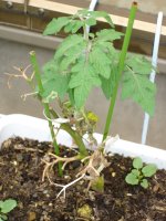 今回の台風は海を通って行ってくれたためか、私にも野菜にも直接的被害が及ばず良かった良かったです。今日は、月一医者(どこが?ひとりぼけつっこみ)のため早く帰ってきたので少しだけ。心なしか、元気な作物たち。コールラビと、奥シシトウです。 まずい、計算以上に成長が早い。被害というほどではございませんが当然のごとく、トマト割れました。 これでも、煮たり炒めるとおいしいんです。唯一被害はこの観察のため無防備に出て行った私の腕。おでぶ、お肉プリプリ腕でした。お口直しに。朝から騒いでいるルコウソウです。本日のところは以上にて。
