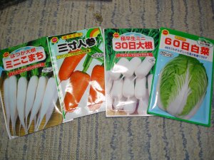 公開日記だからなきゃないでいいんだけど、こう毎日書いていると、ねたを探してしまう。しかし、気分の問題かまったく思い当たるものがありません。しいて言うのならば、いつの間にかに秋は忍び寄ってきていると空気から感じるのと、なぜか蒸し暑く、横浜では雨が降り出したもよう。今年の夏は何かぱっとしませんでしたね。秋野菜でもがんばろう。できてないけど明日コールラビ撤収。で大根をまきます。これで一つねたはできた。