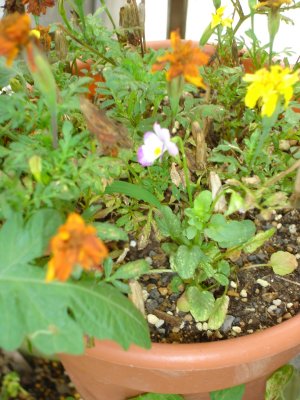 今年種から育てたマリーゴールドに何故かビオラが。 タネまき時期は若干遅れましたが、明日ビオラタネまき予定です。
